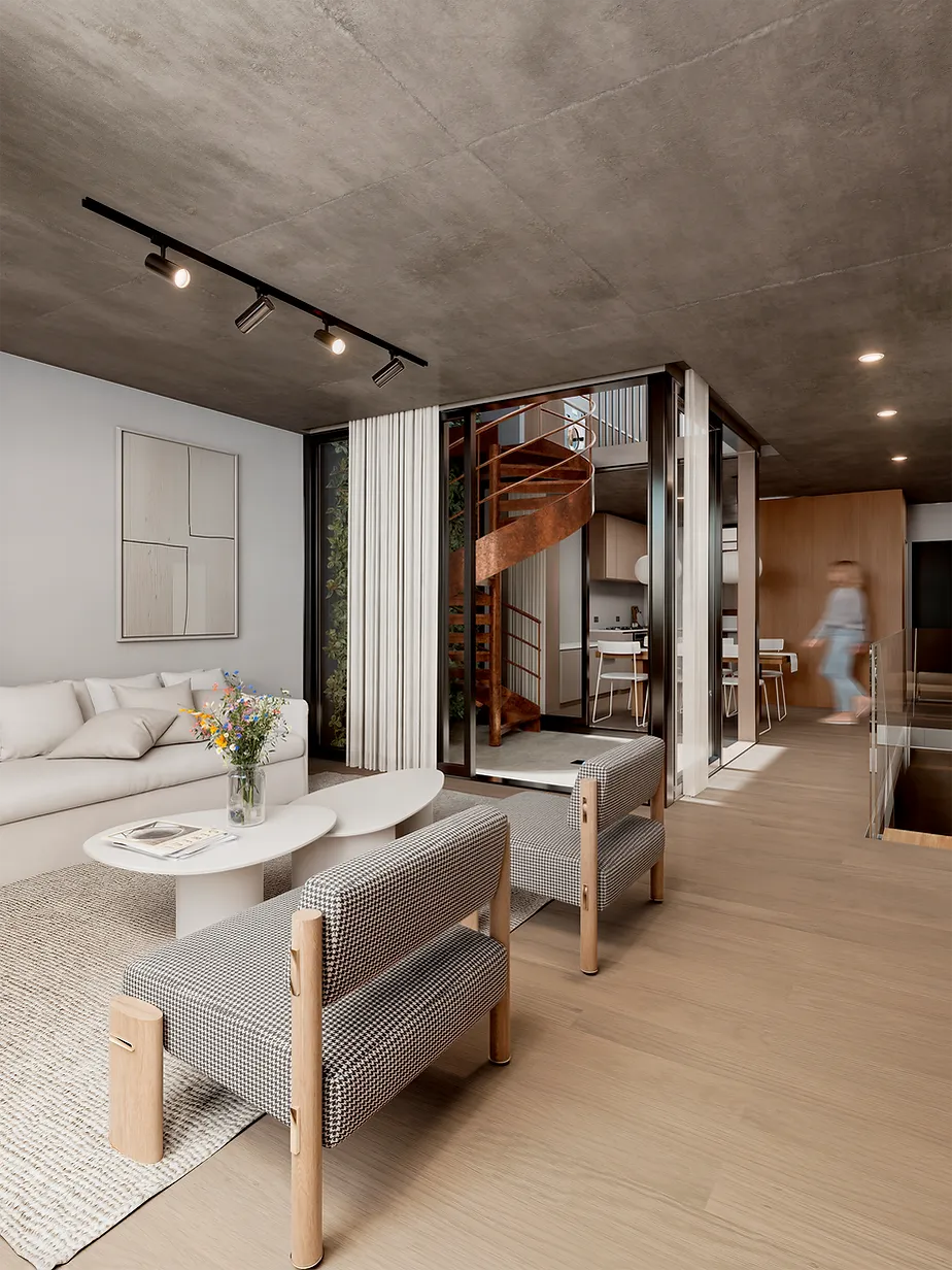 EntreCasas Crespo es un edificio de solo 9 unidades exclusivas, creadas para ofrecer la verdadera experiencia de una casa: espacios amplios, luz natural en cada ambiente y una conexión plena con el exterior.